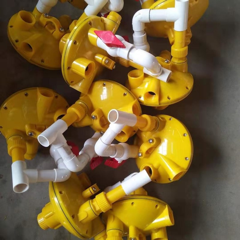 Quando la linea di galleggiamento ha bisogno di un rifornimento rapido, le valvole rotative possono combinarsi per lavare le stalle, raddoppianti la quantità di tasso dello scorrimento dell'acqua è aumentata parecchie volte, l'acqua nella linea di galleggiamento raggiungerà rapidamente la conclusione della linea di galleggiamento, in modo dall'acqua potabile sincronizzata tempestiva del pollame.